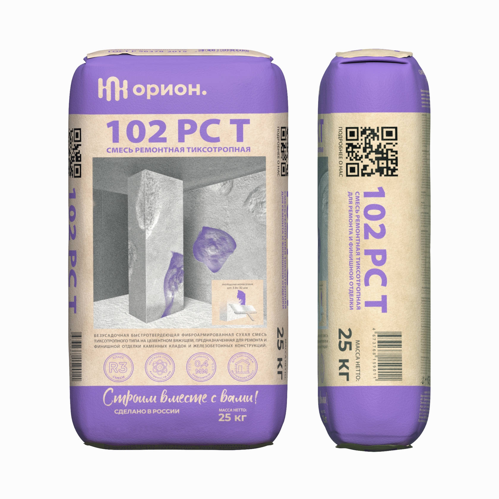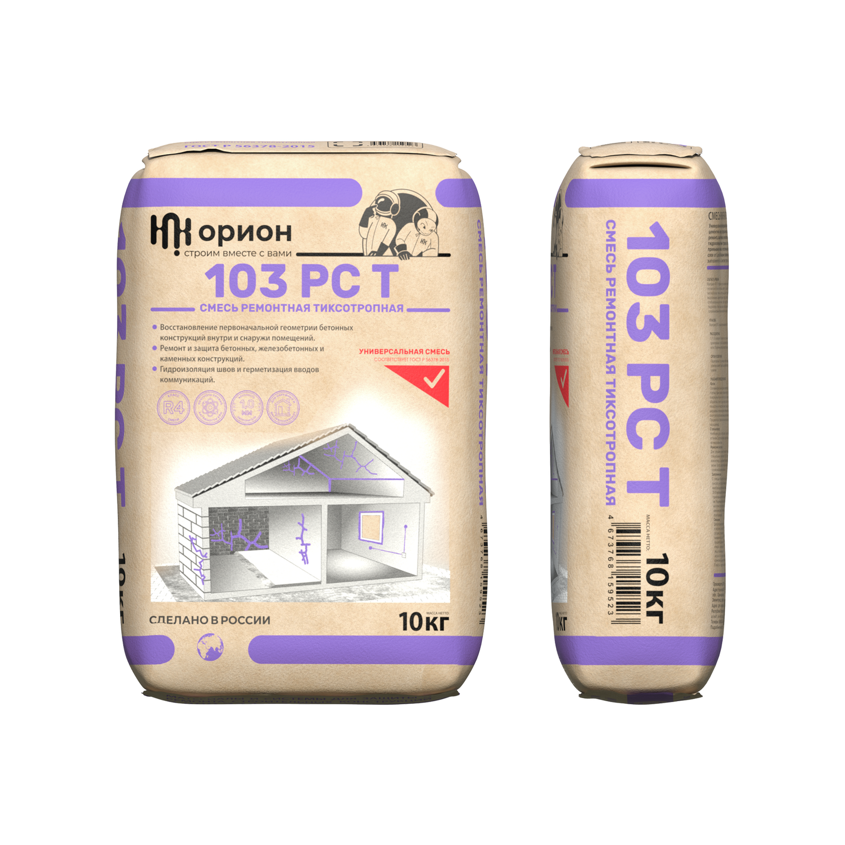Безусадочная фиброармированная сухая смесь тиксотропного типа на цементном вяжущем, предназначенная для ремонта и защиты бетонных, железобетонных, каменных конструкций зданий и сооружений, гидроизоляции статичных трещин, швов, стыков, вводов коммуникаций, сопряжений и примыканий в бетонных и железобетонных конструкциях. Максимальная фракция заполнителя 0,63 мм. Соответствует классу смеси R4 по ГОСТ Р 56378-2015.