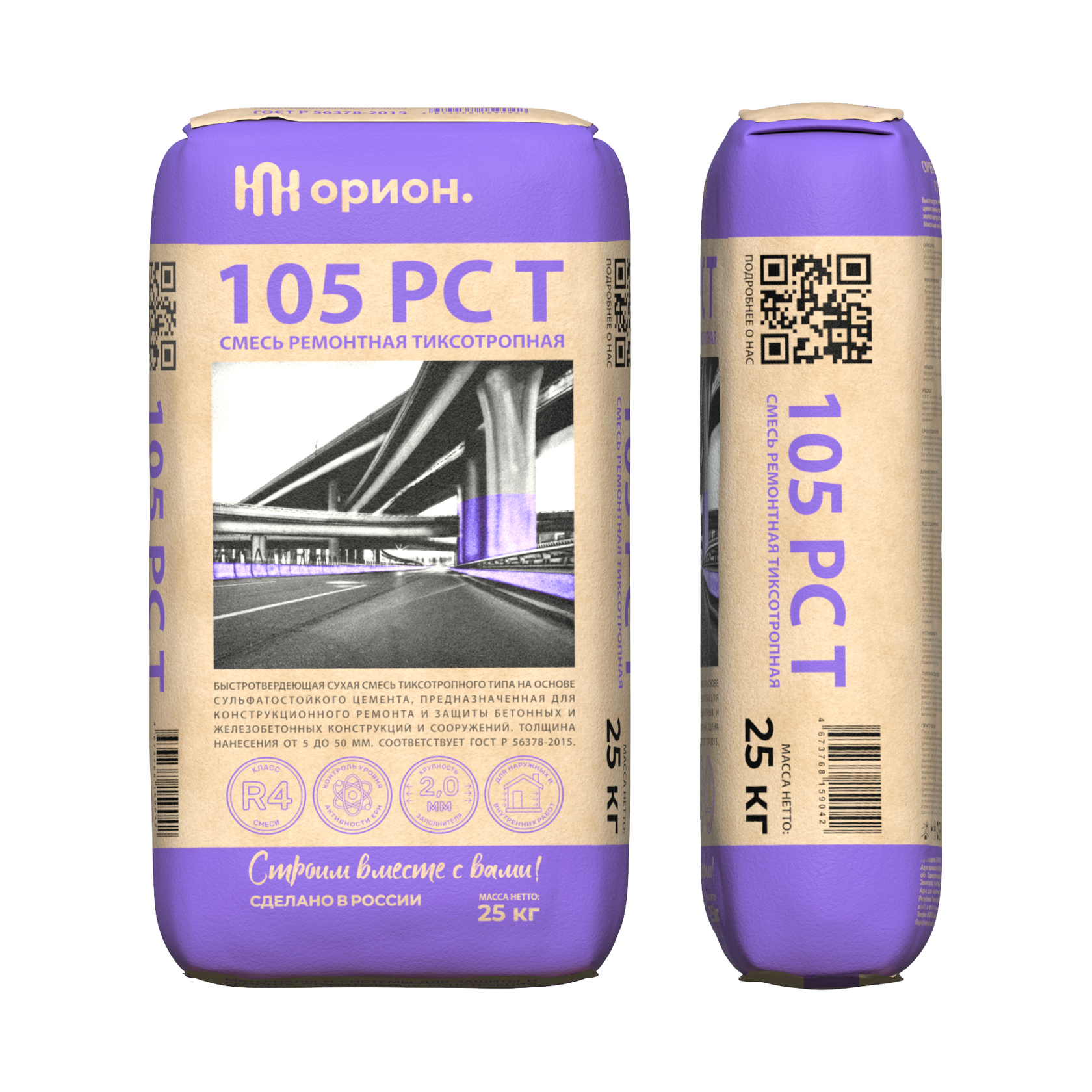 «105 РС Т» является быстротвердеющей фиброармированной сухой смесью тиксотропного типа на основе сульфатостойкого цемента, предназначенной для конструкционного ремонта бетонных и железобетонных конструкций и сооружений. Толщина нанесения в один слой от 5 до 50 мм. Максимальная фракция заполнителя 2 мм. Соответствует классу R4 по ГОСТ Р 56378-2015.