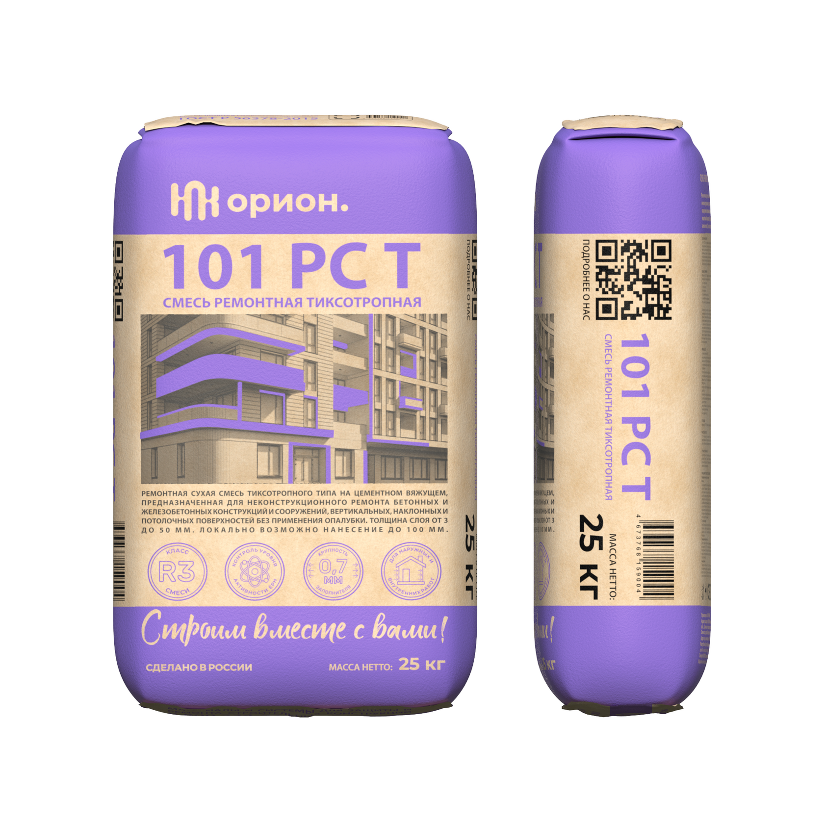 «101 РС Т» является универсальной сухой смесью тиксотропного типа на цементном вяжущем, предназначенной для не конструкционного ремонта бетонных и железобетонных конструкций и сооружений, вертикальных, наклонных и потолочных поверхностей без применения опалубки. Толщина нанесения в один слой от 3 до 50 мм. Локально возможно нанесение до 100 мм. Максимальная фракция заполнителя 0,7 мм. Соответствует классу смеси R3 по ГОСТ Р 56378-2015. Поставляется в мешках по 12,5кг и 25кг.